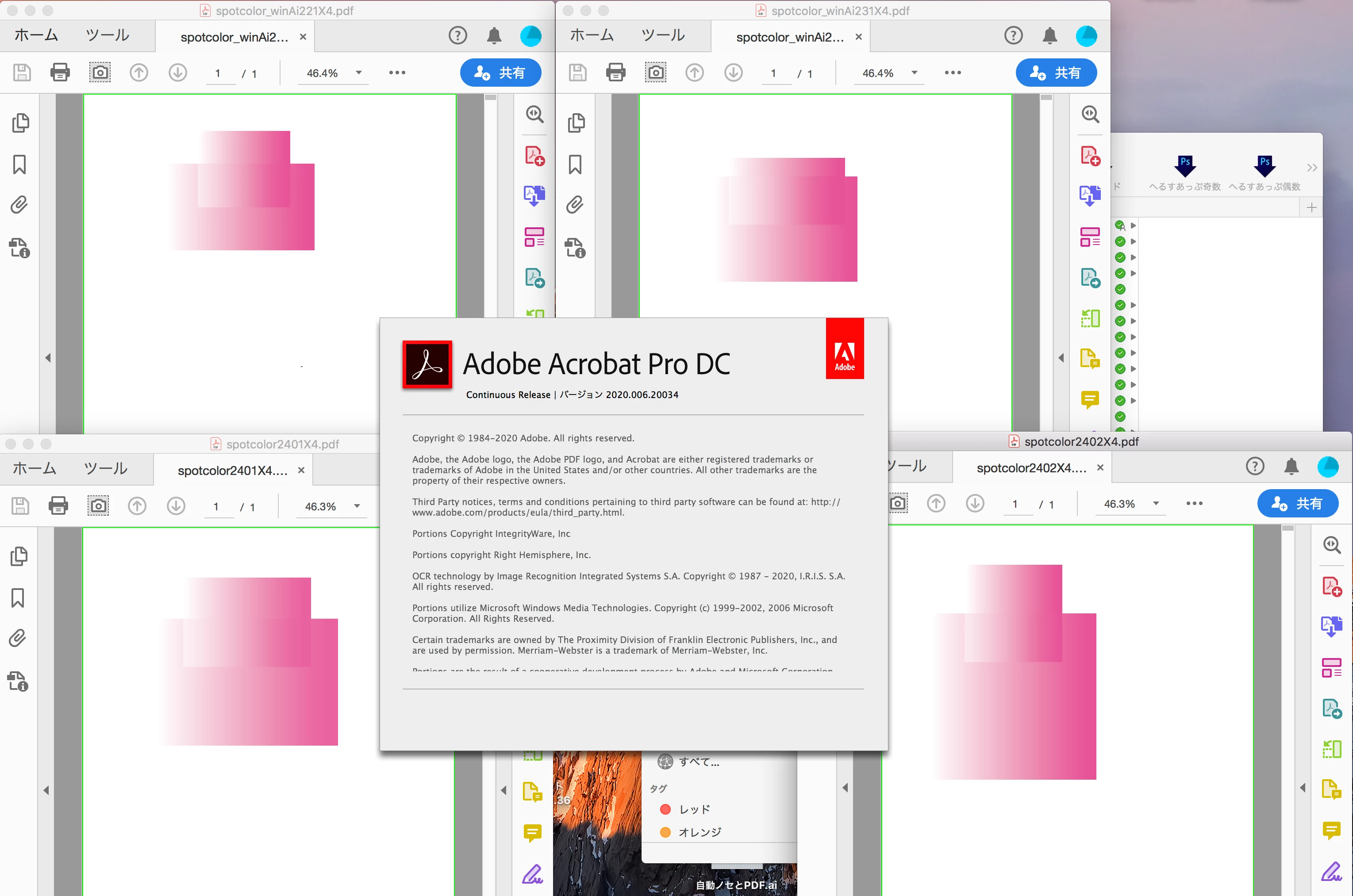 ところが、MacのAcrobat Pro DC(バージョン同じ)で開いたところ、問題なく表示されます。