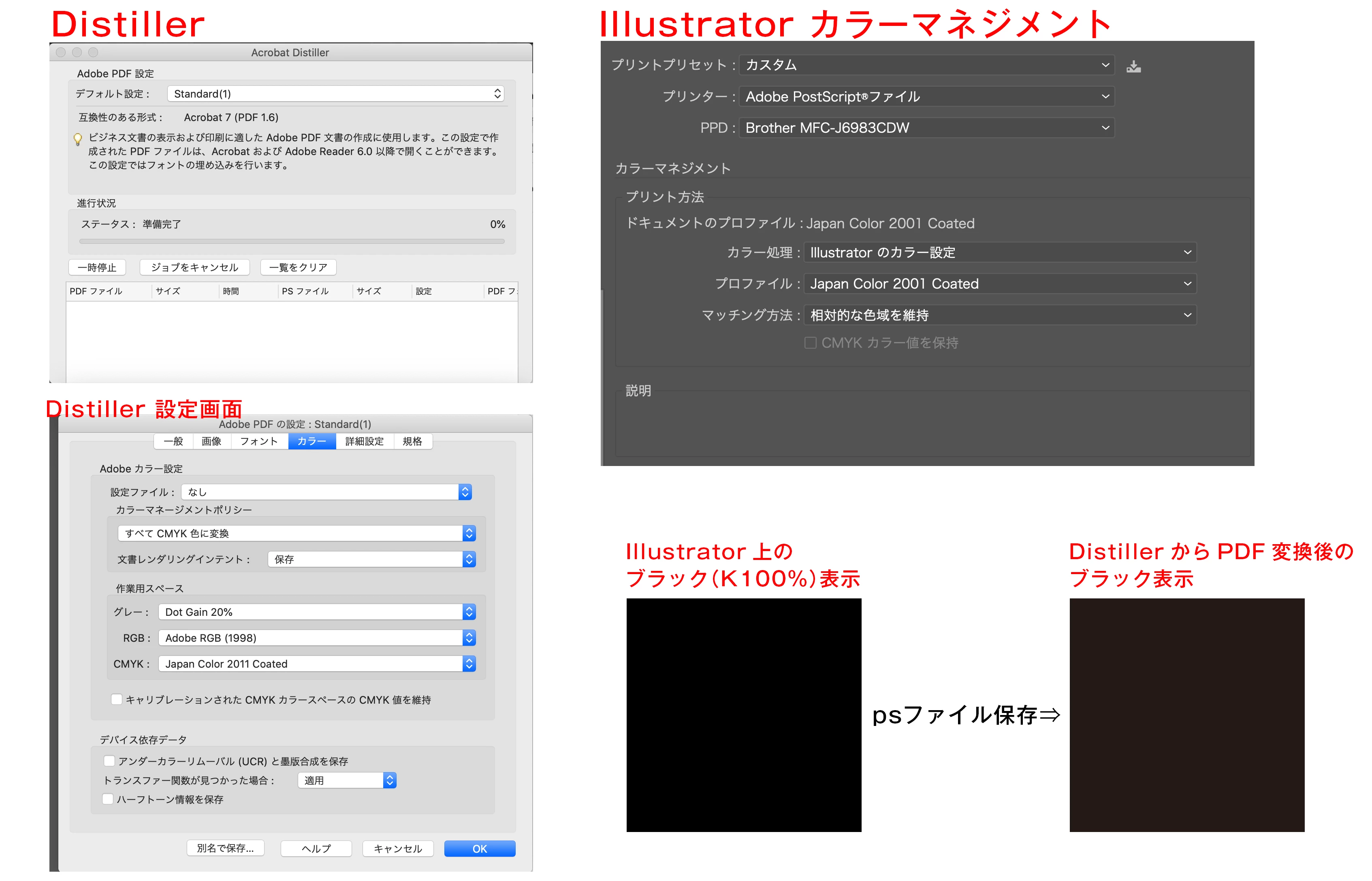 Illustratorからps保存したファイルをDistillerでPDF変換するとブラックの色が変わる