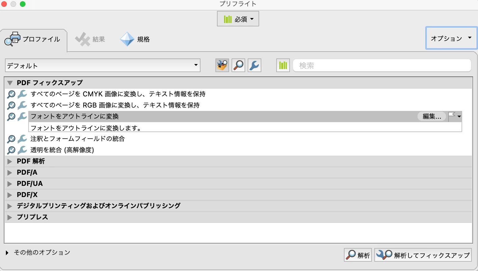 (Adobeアクロバットのプリフライトのブックレットでフォントをアウトラインに変換)