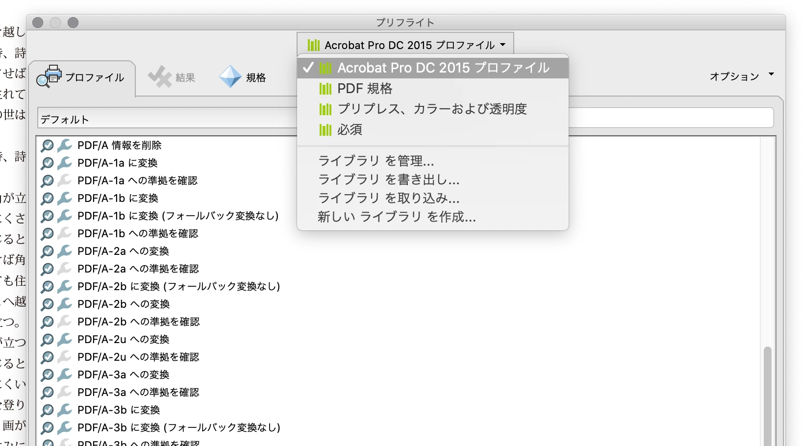 /Users/XXX/Library/Application Support/Adobe/Acrobat/Preflight Acrobat Continuous/Repositories/にある「Default」フォルダを削除もしくは退避してからAcrobat DCを起動してください。これで「Default」フォルダが再作成されます。