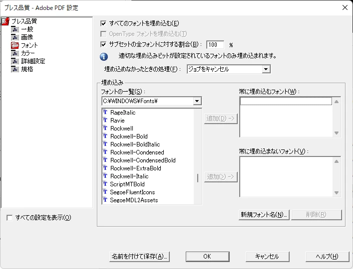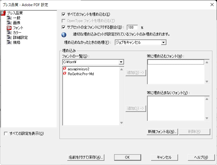 操作3:C:\fontフォルダをDistillerフォントの場所を追加