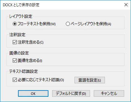 Windows 10+Acrobat DC Continious 2017.012.20098の環境で2種類のPDFからWord(docx)に書き出しましたが、
