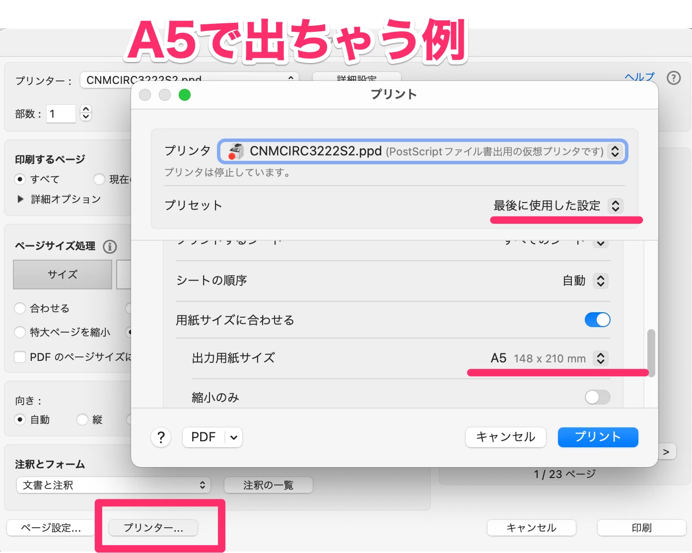 PDF文書だけが、どの文書も A5で 出てきてしまします