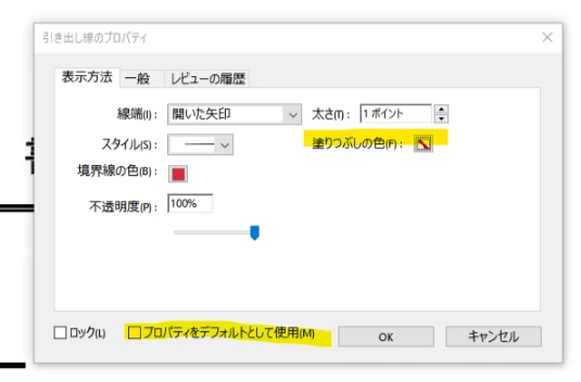 PDFの注釈ツールで、引き出し線付きテキストボックスの背景色を通常のプロパティウインドウ内の『塗りつぶしの色』選択で「カラーなし」を選択できないのですが、背景色を透明(カラーなし)に設定する方法をご存知ないでしょうか?