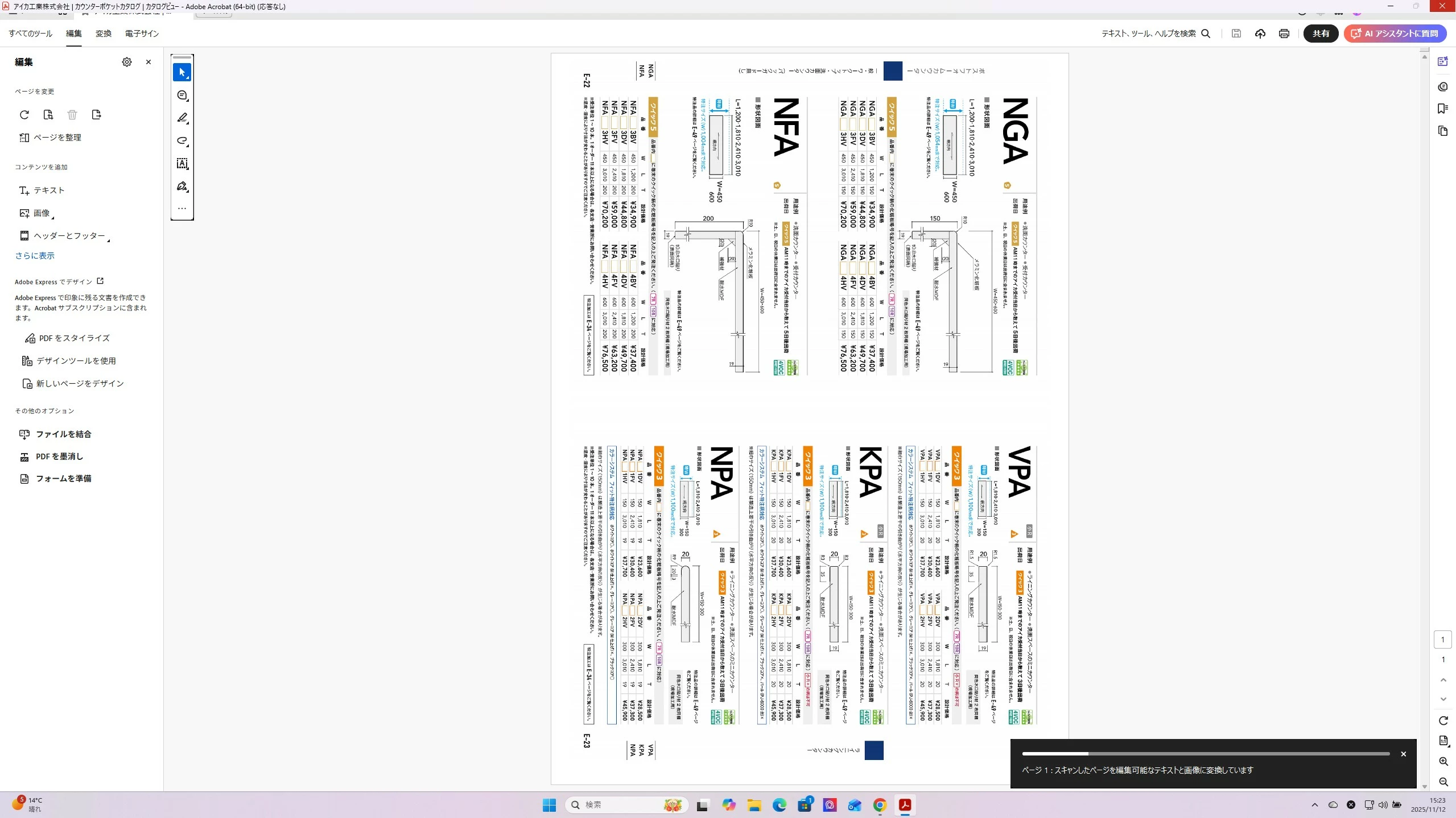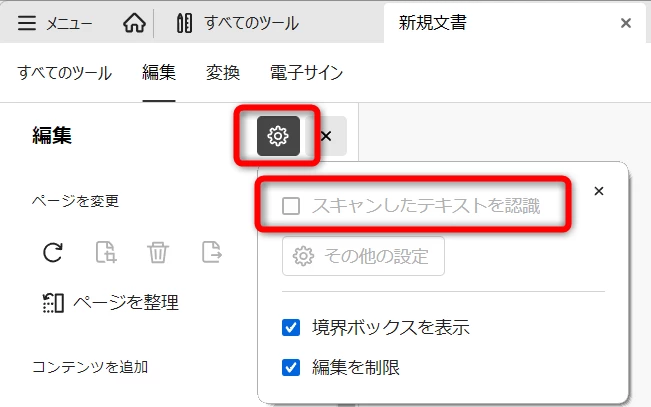 WWhispering_solution3220ParticipantForum|Forum|2 months agoNovember 12, 2025質問PDF編集スピードが遅いForum|Forum|2 months agoNovember 12, 2025返信数 2.126 ビューPDF編集でドキュメントの向きを変更(ページを回転)する際に「スキャンしたページを編集可能なテキストと画像に変換しています」とポップが表示され、編集するまでに2~3分程度要する場合があります。速やかに回転する方法はありますでしょうか?デスクトップ版右下に回転マークもありますが、上書き保存し再度開いても元の向きのままとなります。他のタスク等も立ち上げていません。解決策を教えていただけると助かります。何卒よろしくお願い致します。 Adobe Acrobat 2025.001.20844 /64bitintel Corei7 メモリ32GB 13世代 PDF の編集と変換