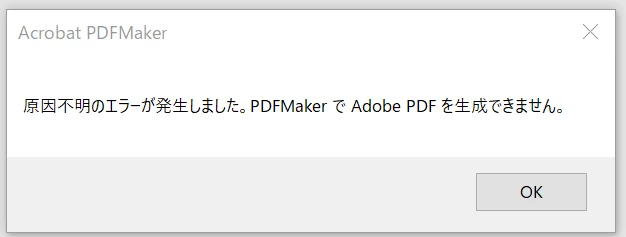 突然、PowerPointのファイルのみ「原因不明のエラーが発生しました。PDFMakerでAdobePDFを生成できません」とのエラーが出て、PDFに変換できなくなりました。WorkやExcelでは問題ありません。最後にPowerPointのPDFを作ったのは、2022年9月27日で、それ以降作っていなかったのですが、作ろうとしたら画像のエラーが出て、できなくなっていました。アドオンの設定も何度かやり直しましたが、結果は同じです。