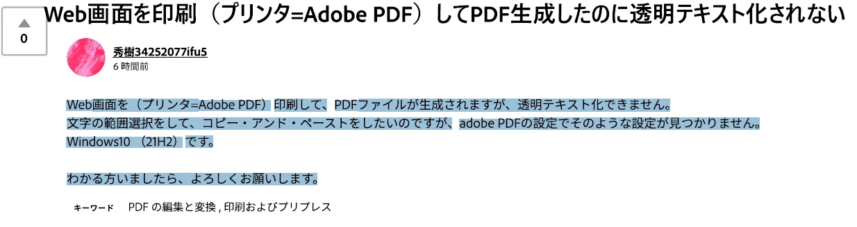 Web画面を印刷(プリンタ=Adobe PDF)してPDF生成したのに透明テキスト化されない