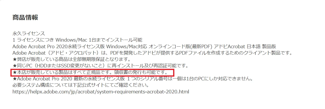 Yahooストアで20000-ほどで販売されているAcrobat Pro2020永続ライセンス版ですが、