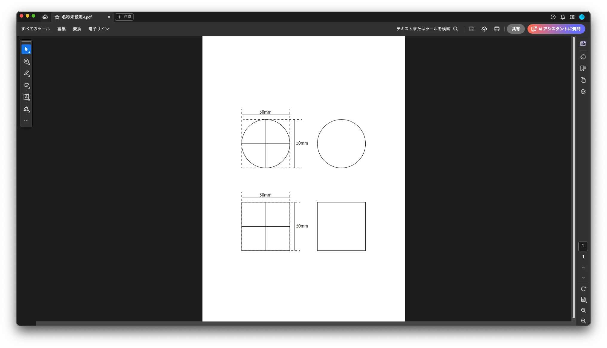 ・PDFの内容を90度回転させると縦方向になった辺が長くなり、縦方向だった辺は短く(正常)になります。