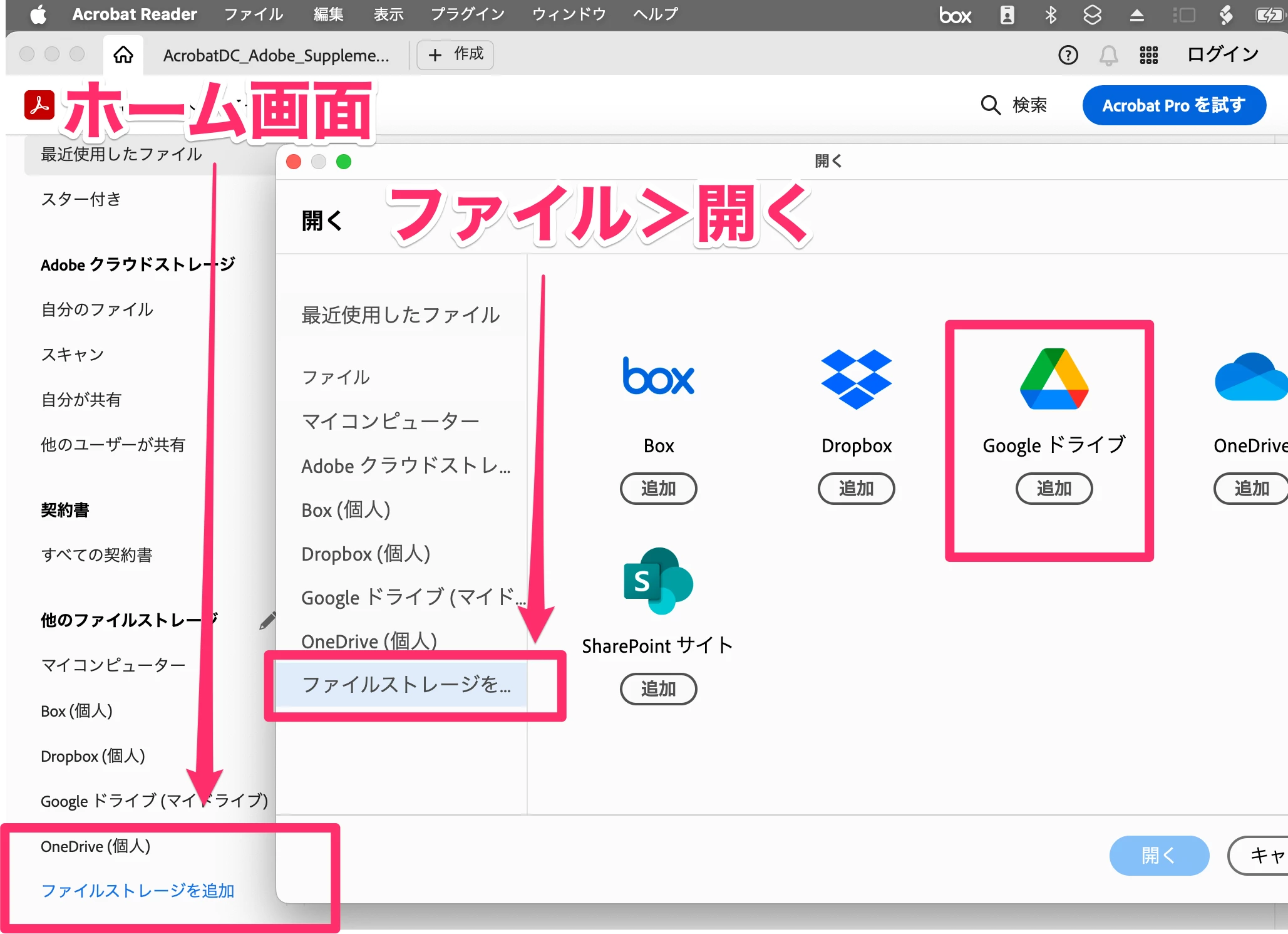 Acrobat での Google ドライブファイルへのアクセス