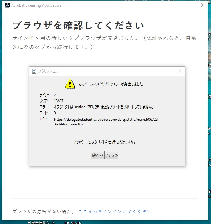 先日より、下記のスクリプトエラーが表示されるようになりました。このエラーは何でしょうか?