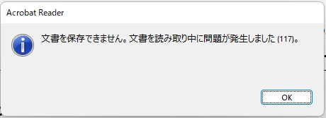 エラー内容:文書を保存できません。文書を読み取り中に問題が発生しました(117)。