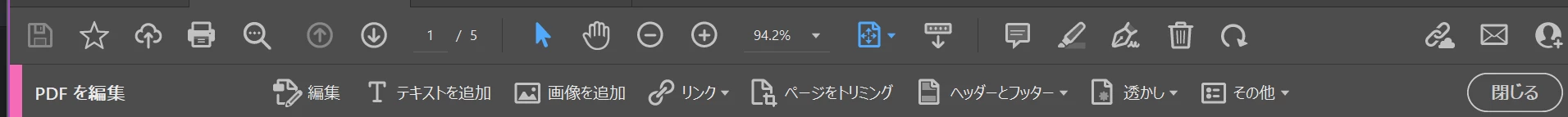 PDFファイルの「編集」をクリックして編集状態にしました。