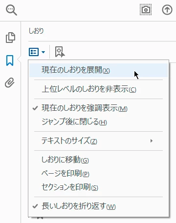 オプションにある「現在のしおりを展開」でしょうか。