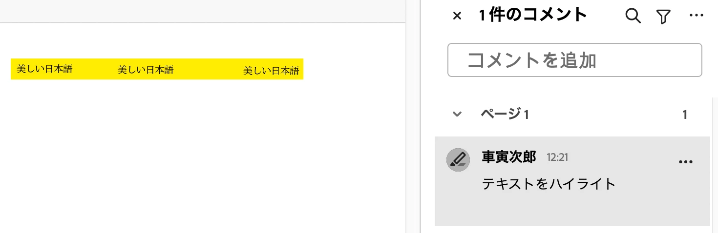 Acrobat Readerでハイライトを引く際に空白部分でハイライトが区切られてしまいます。