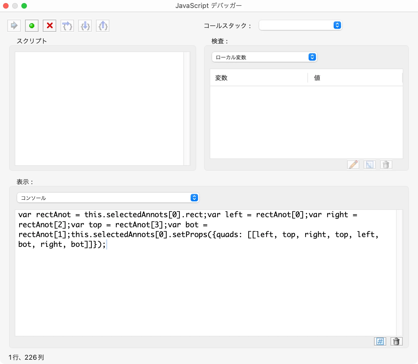 var rectAnot = this.selectedAnnots[0].rect;var left = rectAnot[0];var right = rectAnot[2];var top = rectAnot[3];var bot = rectAnot[1];this.selectedAnnots[0].setProps({quads: [[left, top, right, top, left, bot, right, bot]]});