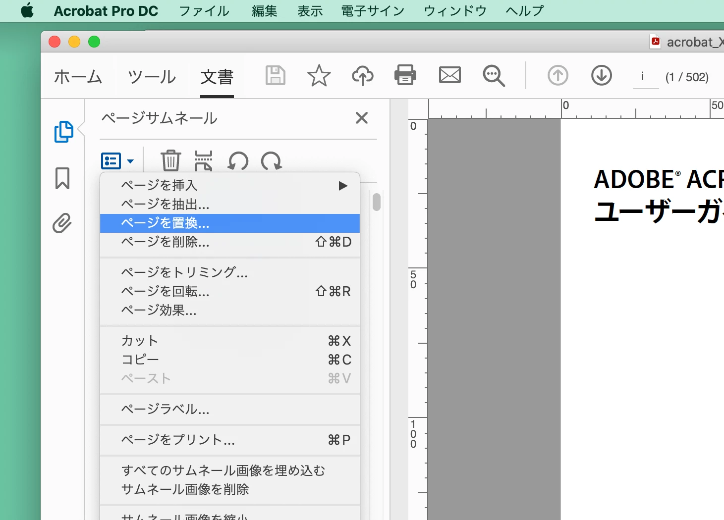 例えば「ファイルを単一のPDFに結合」または「ファイルの結合」で1つのファイルに結合したバインダー内の1枚に誤りがみつかり、結合されているバインダー内の1枚を正常な1枚と差し替えをしたい場合、「ページの整理」で誤りのページを削除した後、どのように操作するのでしょうか?