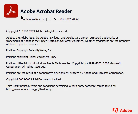 7/25現在2024.002.20965が最新バージョンですが,グローバルコミュニティのAcrobatフォーラムを見た感じでは,このバージョンへのアップデートにより不具合が解消されるようです。ご確認いただければと思います。