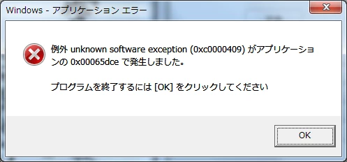unknown software exception(0xc0000409)