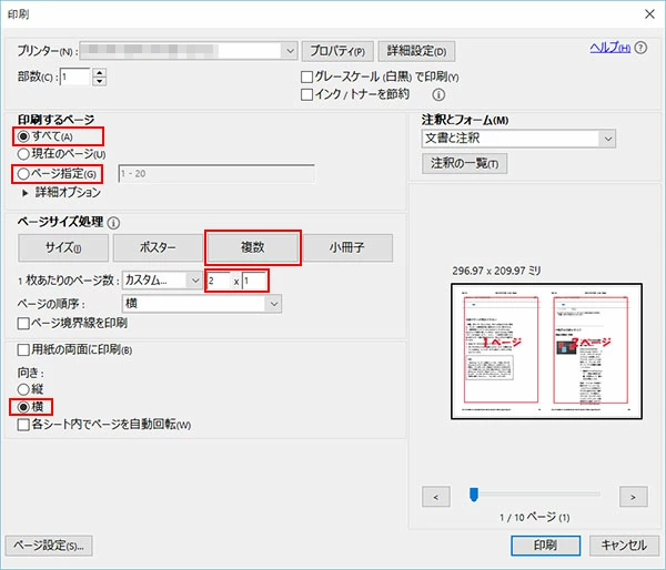 印刷時は以下のように設定してみてください。(一例です)