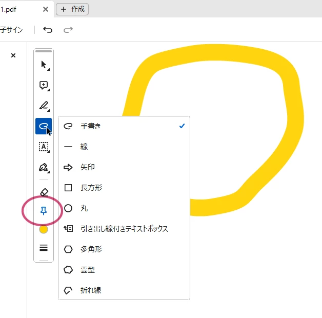 Acrobat Readerの手書きツールを継続して使えるように固定したい