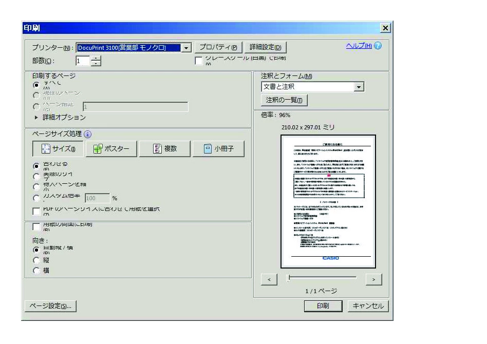 Acrobat Reader 印刷ダイアログの表示が正常ではありません。