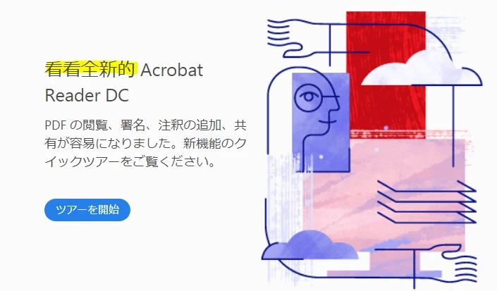 【Acrobat Reader】【改善】アップデート後「看看全新的 Acrobat Reader DC」とお知らせが出る