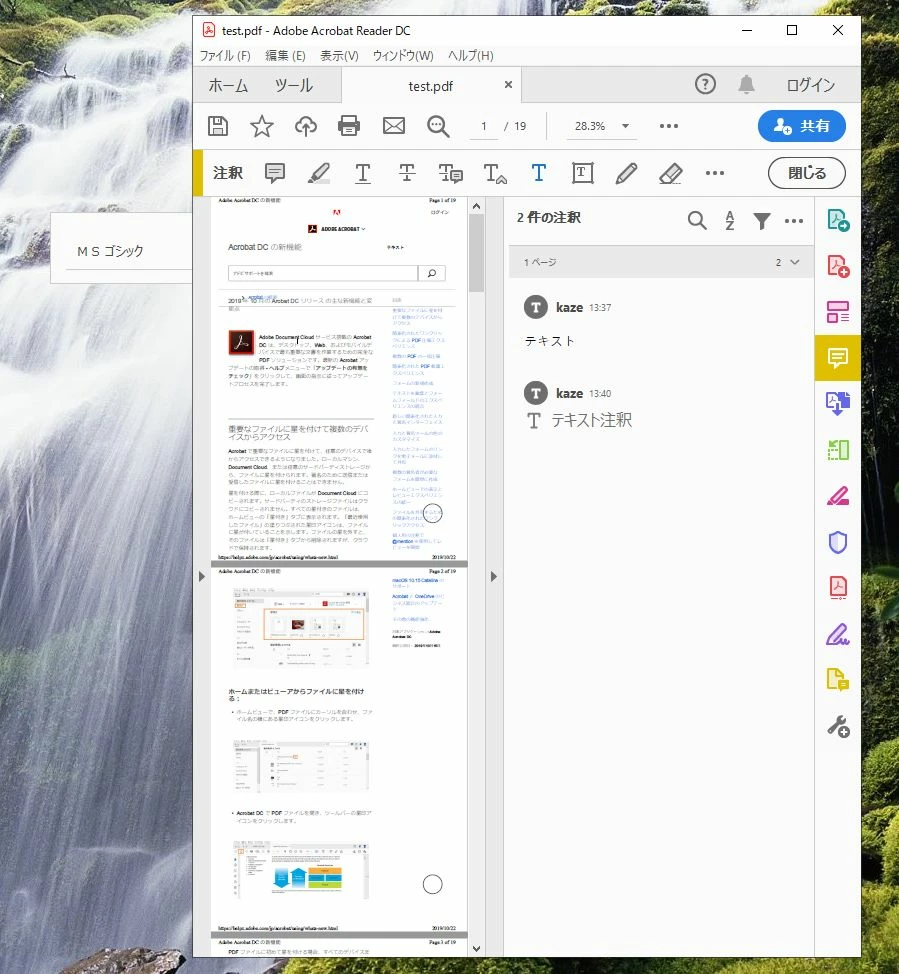 Acrobat Reader DCでPDFファイルを表示し「テキスト注釈の追加」でテキストを追加するのですが、