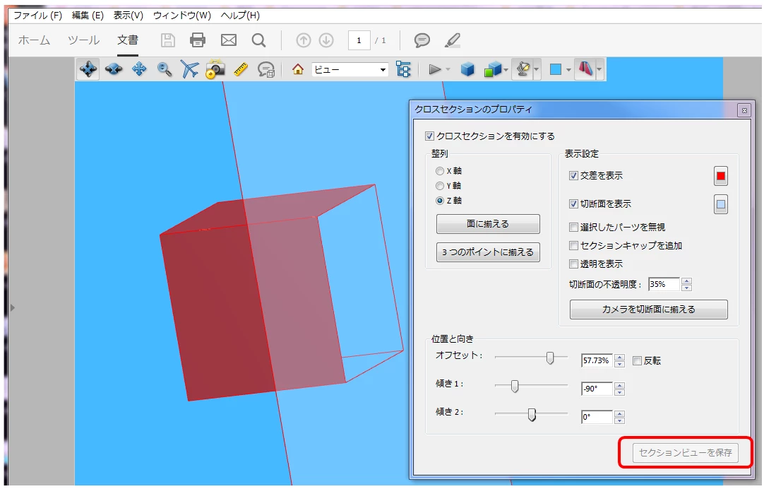 Adobe Acrobat Reader DCのクロスセクションノプロパティで"セクションビューを保存"が使用できない