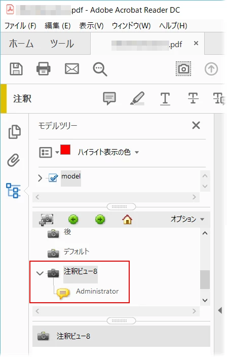 下記画像のように3D PDFをAdobe Acrobat Reader DCで開いて