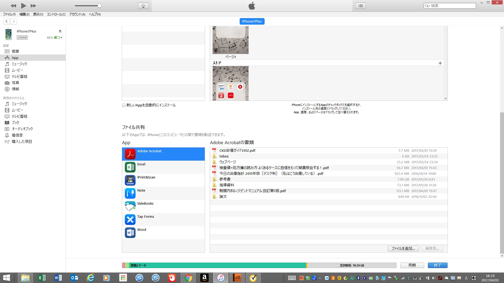 iPhone版のAcrobatについてiTunesを介して資料をAcrobatのローカルにダウンロードしたのですが