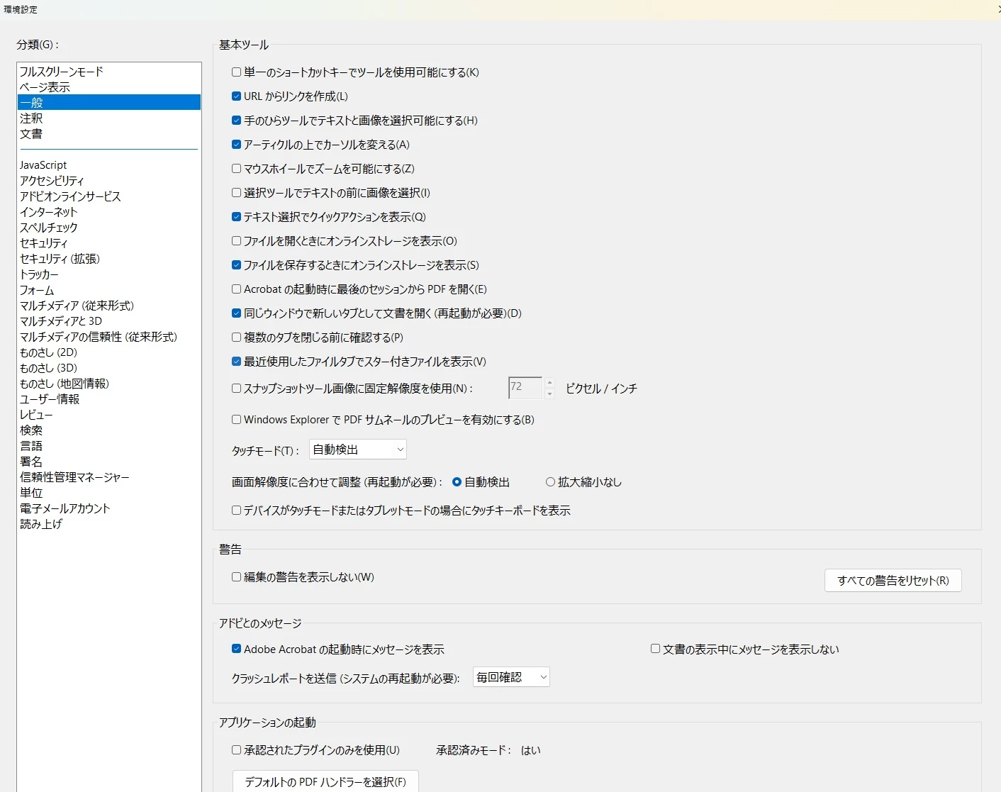 ”「ChromeブラウザーでPDFがダウンロードされたとき、ReaderでそのPDFを自動的に開く」のチェックを外す”との記載がありましたが、私の環境設定にはそのような文言はございません。