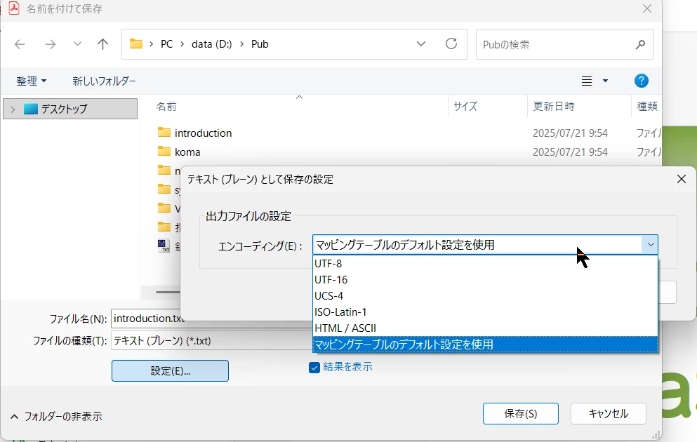 PDFをテキスト保存するときの文字コード設定について