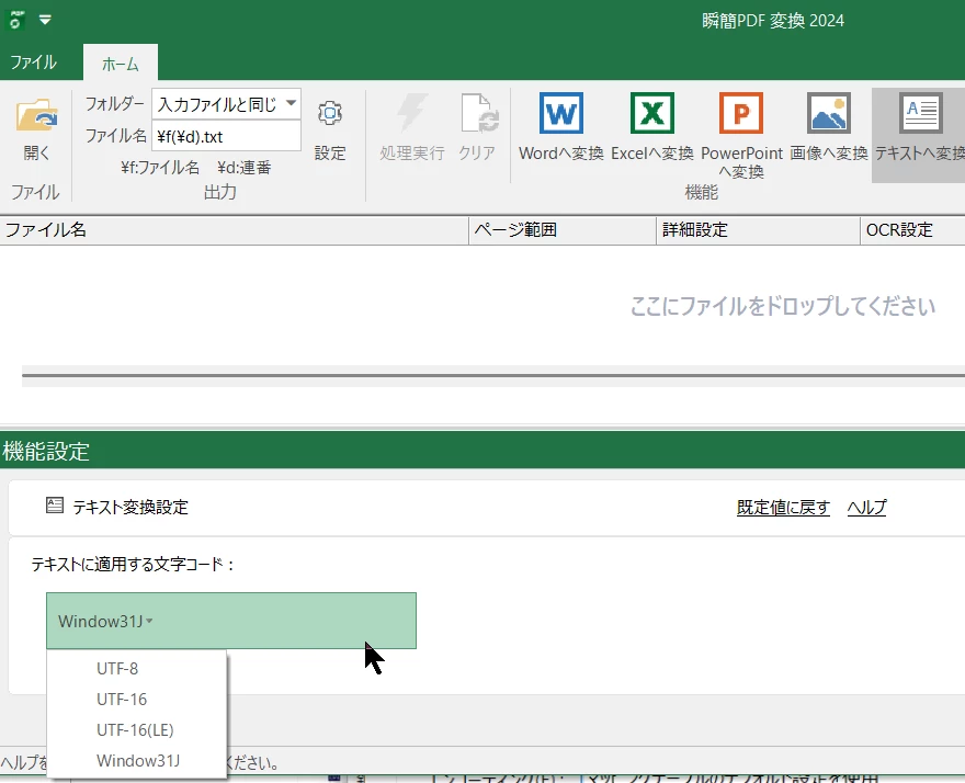 ちなみに、アンテナハウスの「瞬簡PDF 変換」は次の文字コードが指定できます。