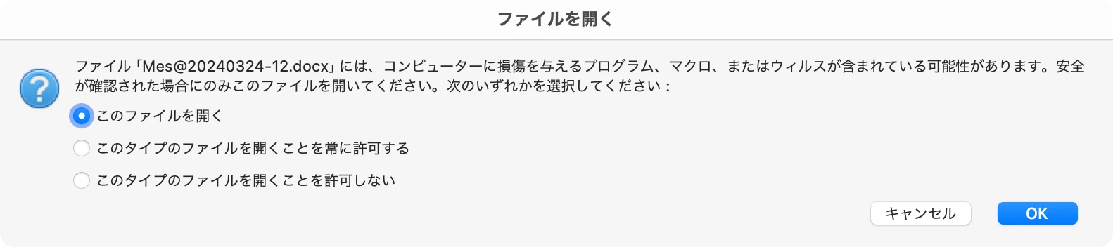 添付ファイルを開く時の『選択』によってかな?