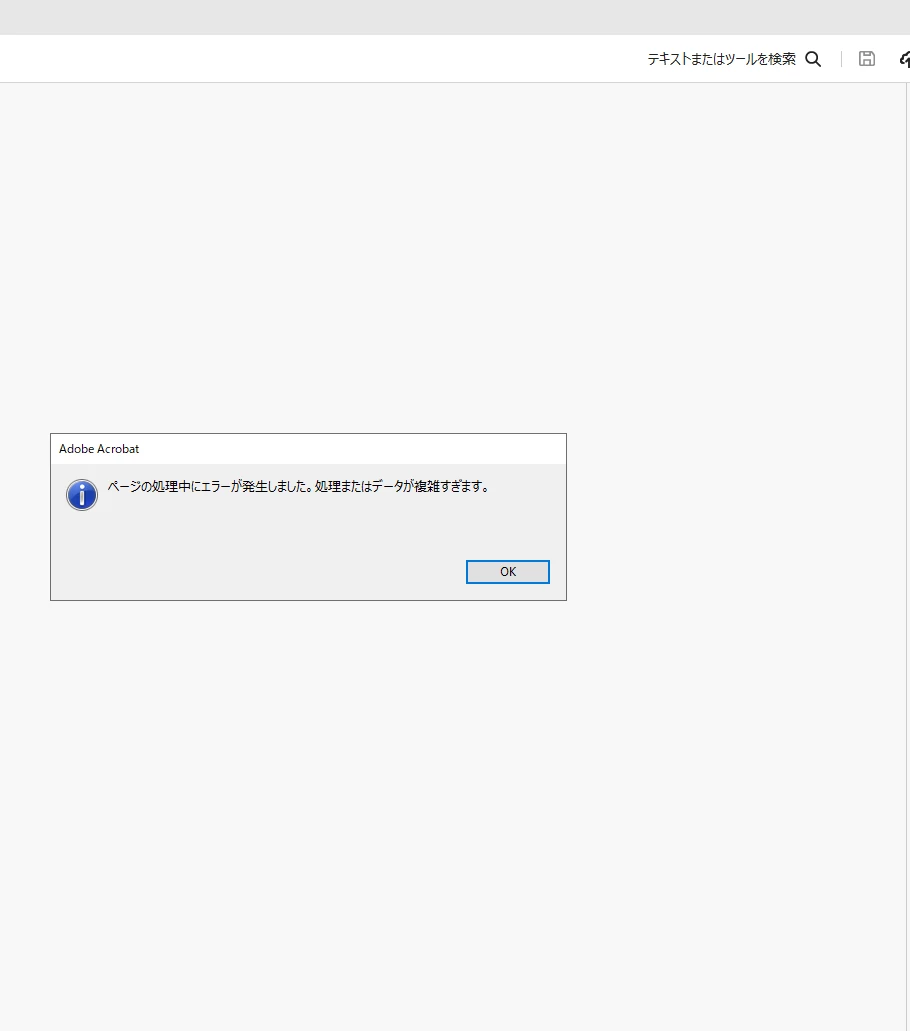 添付画像のように、「ページの処理中にエラーが発生しました。処理またはデータが複雑すぎます。」というエラーが発生し、