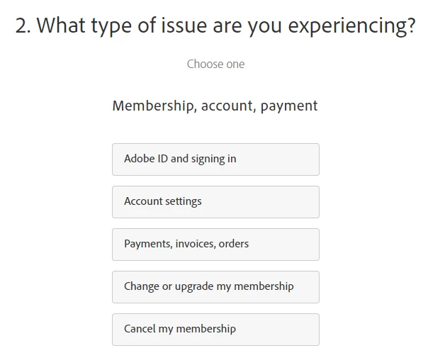 2- Select Cancel my membership or Payments, Invoice, Orders