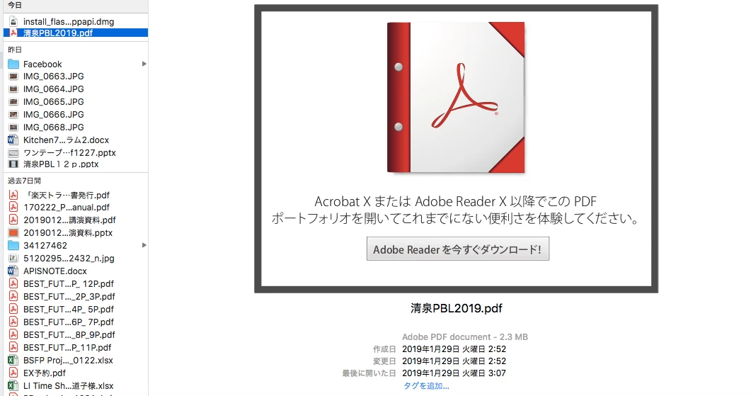 ファイルを統合すると、このようなPDFファイルになり、そのあと加工もできず、他の人が開くことができないPDFになります。