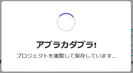完成済みの作品の複製試みるも以下表示のまま進まない。