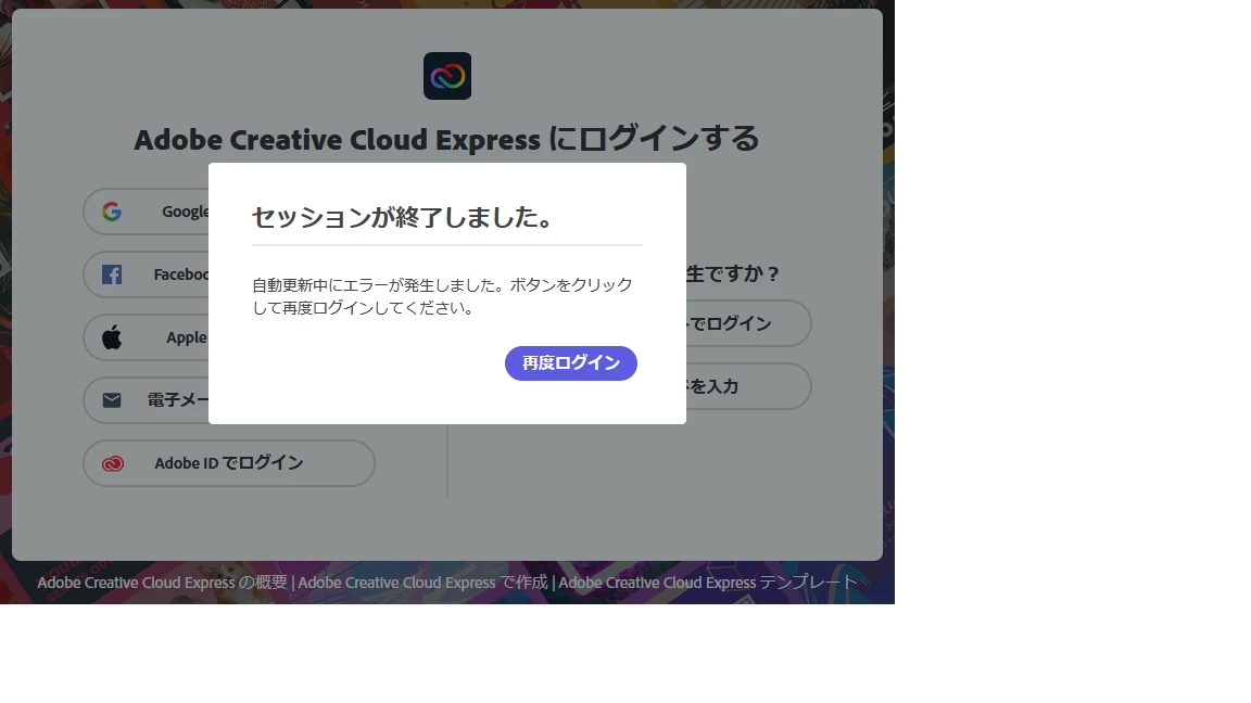 少し離席後戻ったら以下が表示されたので再度ログイン。