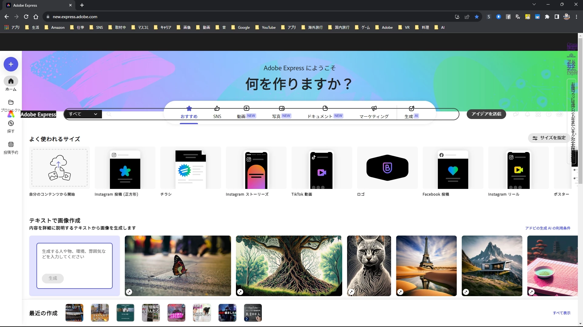 Adobe Expressのトップページ崩れ