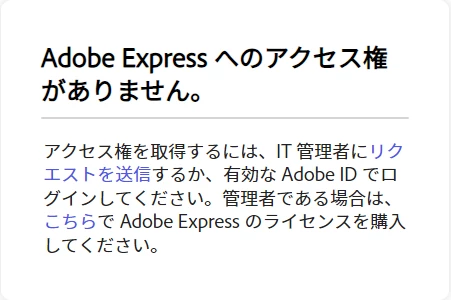 Adobe Expressへのアクセス権がありません、と表示されて使えません。