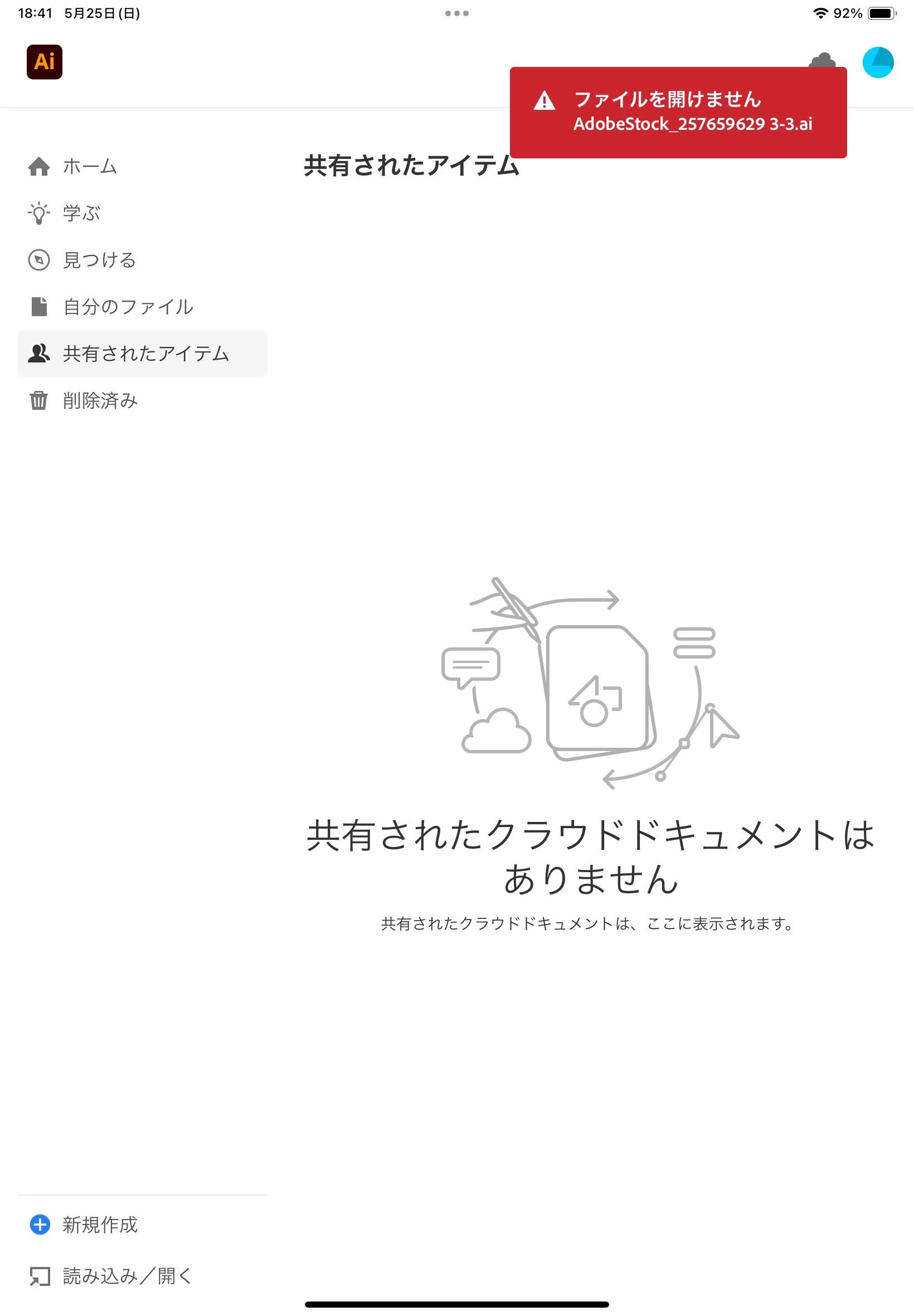iPad Air でadobe stock(無料期間中)を利用しているのですが、入ったばかりは写真をダウンロード、表示できていたのに最近になって全く開けなくなってしまいました。