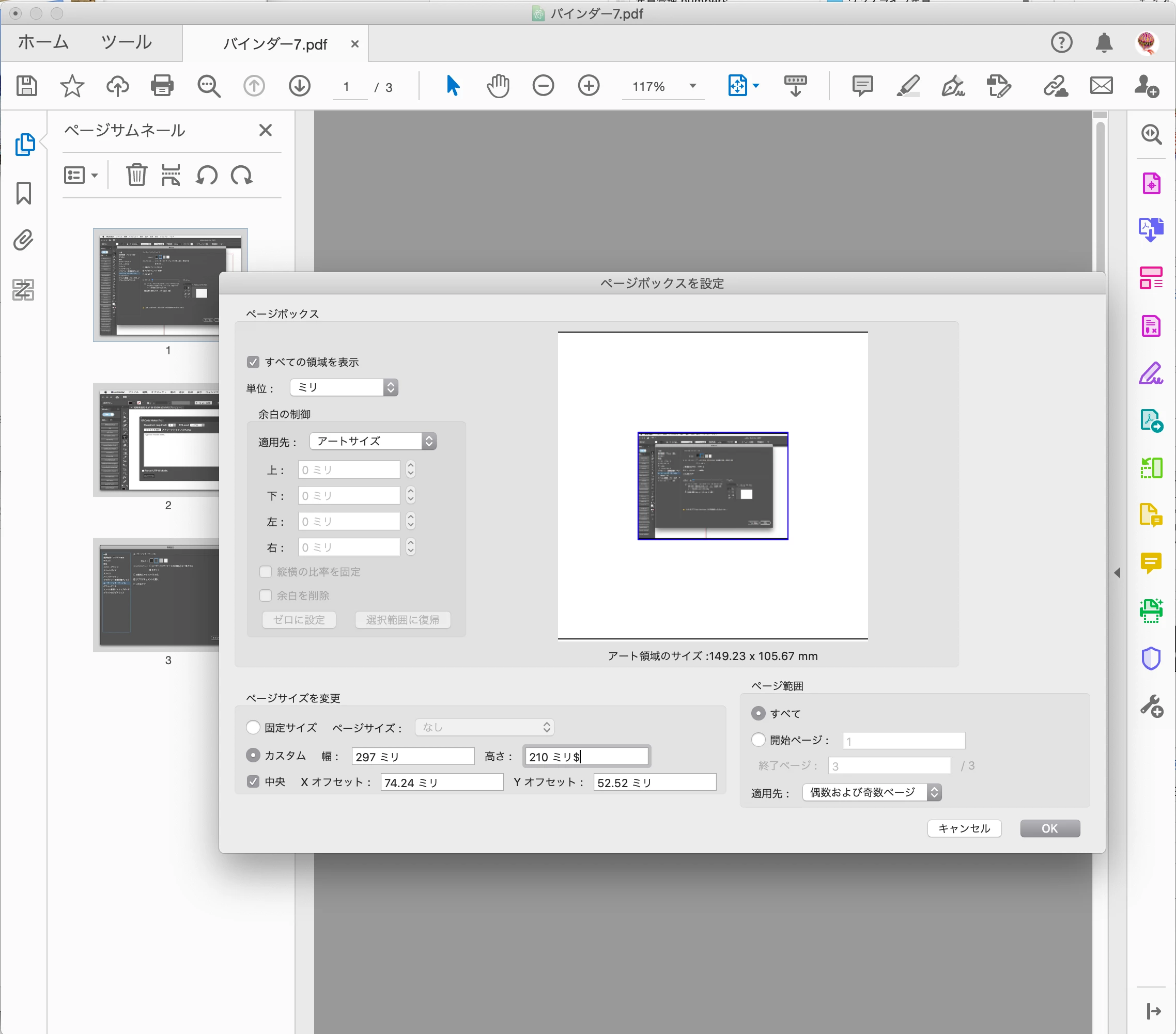AdobeScanで撮影したPDFは何も設定しないと、「自動調整」となっていて、サイズが固定されていません。