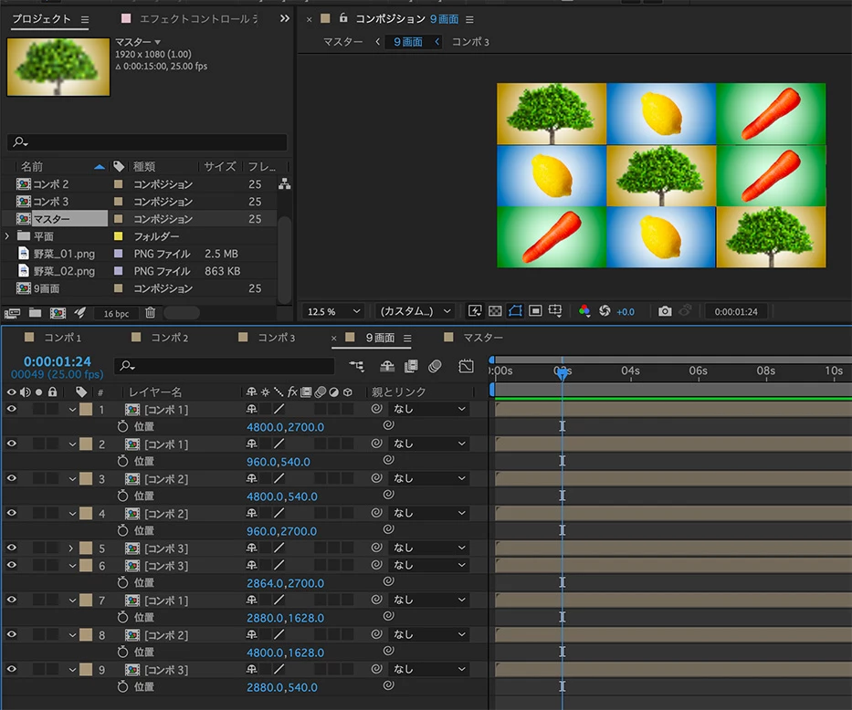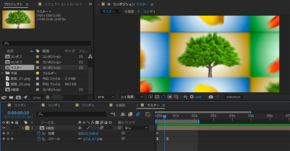 これは、コンポ内に配置した動画を3Dカメラを使って、移動して表現しているのでしょうか?