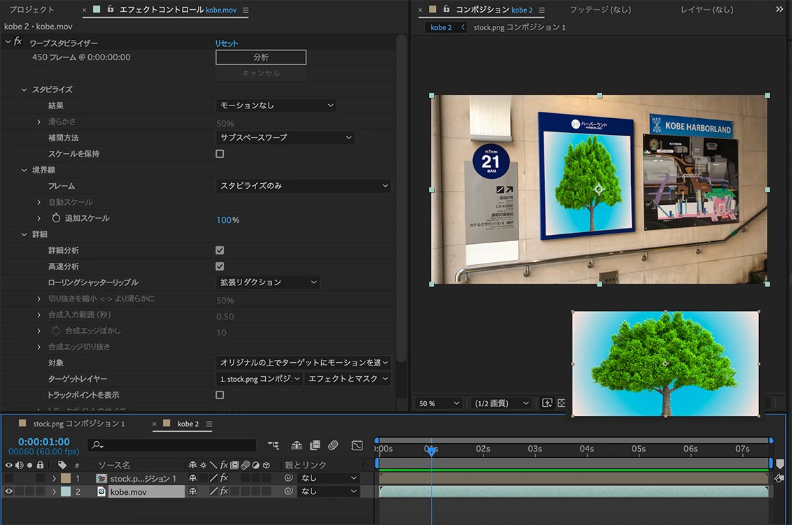 この方の動画に習って全くAeいじったことのない人間がやってみましたところ壁に当たりました。トラッカー、なんやかんややって遠近コーナーピンと選択してテレビ画面の四つ角にポイントを合わせて最後適応しややしばらく読み込み時間が続いて 再生ささったと思ったら何故か液晶と嵌め込んだ動画素材だけが再生ささっています。元となる動画は自分の部屋にあるテレビを少し離れて撮影しており、その動画に映っているテレビの中にアーテイストのMVをはめ込むつもりでした。テレビの液晶範囲しか適応後写っておりません、、、。