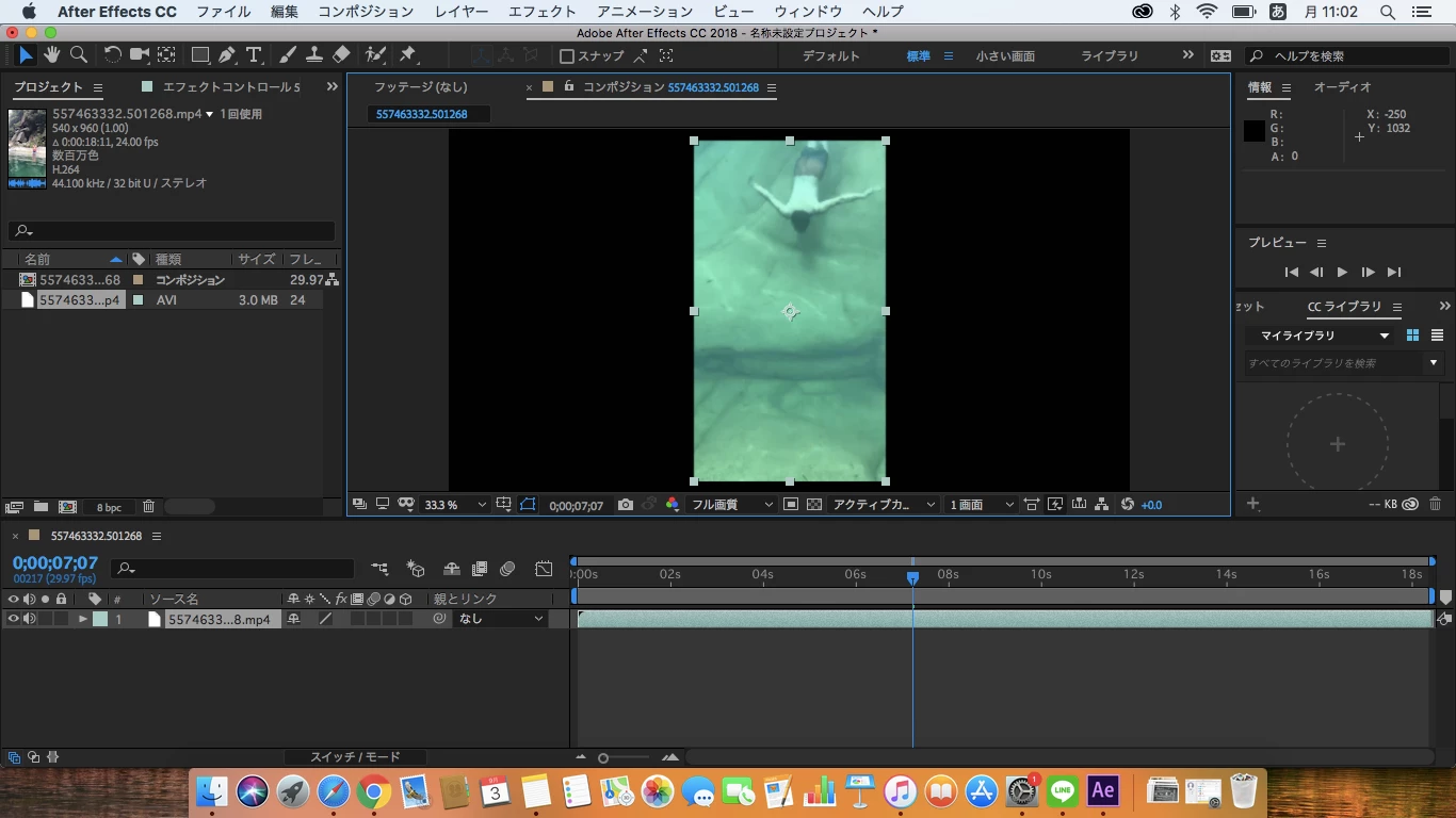 1920×1080ピクセルのコンポジションの中に、推定540×1020ピクセルの縦長映像が配置されているようですね。