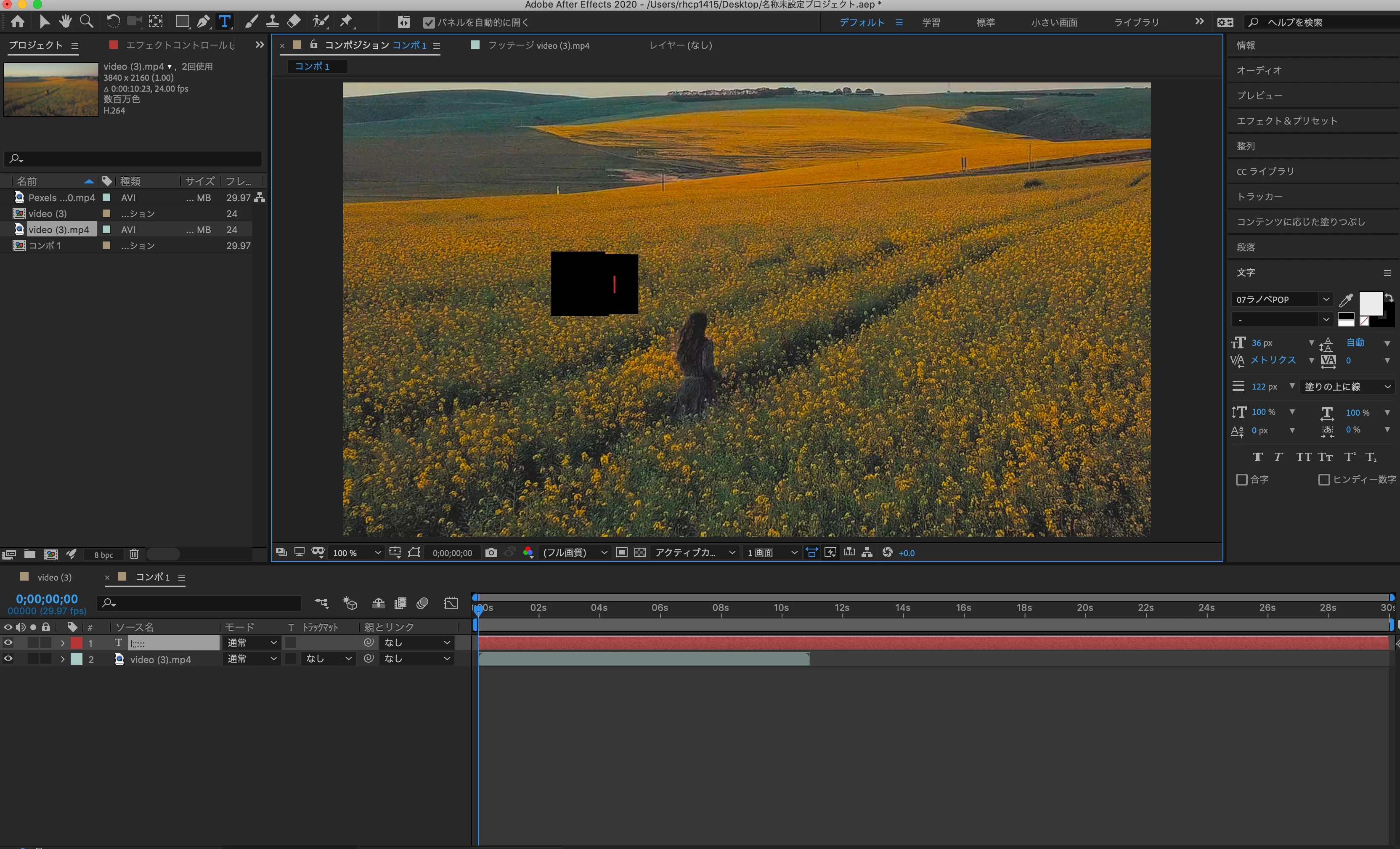 アフターエフェクト テキストが表示されない 黒く塗りつぶされる