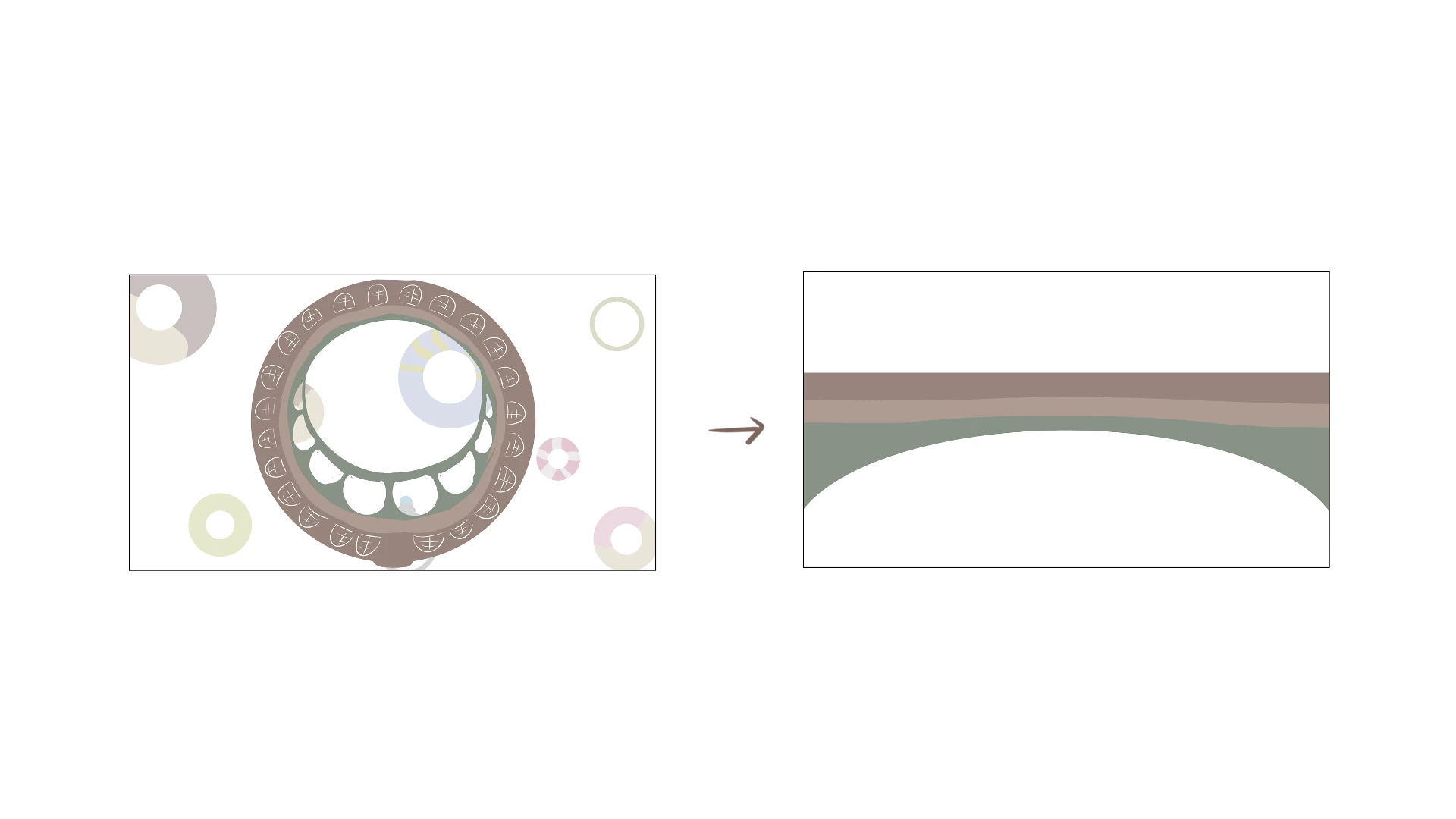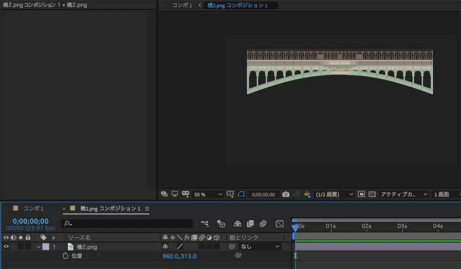 この橋のイラストを円状にしたものから、元のこの形に戻るという映像を作りたいです。