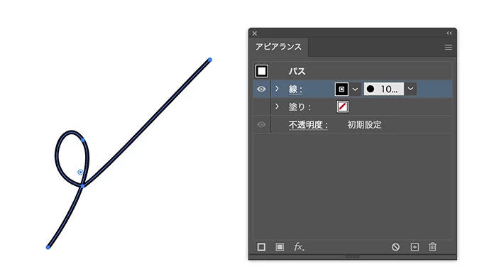 アピアランスでパスの線を「丸筆」にすると、アウトラインに変換されてペーストされます。